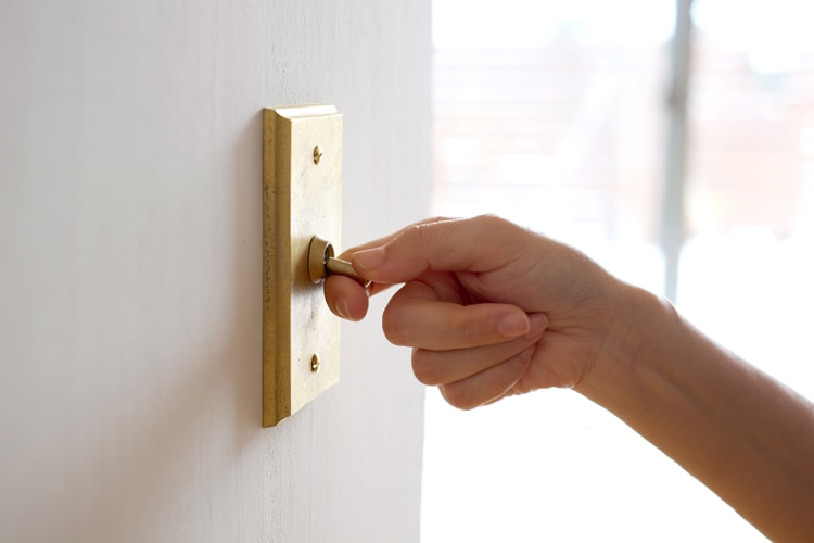 取付場所や使用頻度によっても異なりますが、カチカチと上下するつまみ部分は、触れるほどにツヤが生まれて色濃く変化する様子をお楽しみください。