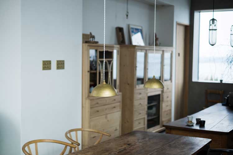 ペンダントランプは、キッチンツールやテーブルウェアと比較して手で触れる機会が少ないため、大きな変化はなく、使用年数とともに真鍮の色味が濃くなって、味わい深く変化していきます。