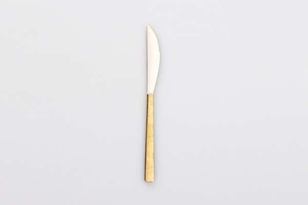 This cutlery series features handles made from solid brass casting, providing a unique texture and a comfortable grip. Made from lead-free brass, the parts that touch your mouth are plated with silver for safety. Enjoy the contrast between brass and silver, the smooth feel in your mouth, and the comfortable grip of the textured handles.