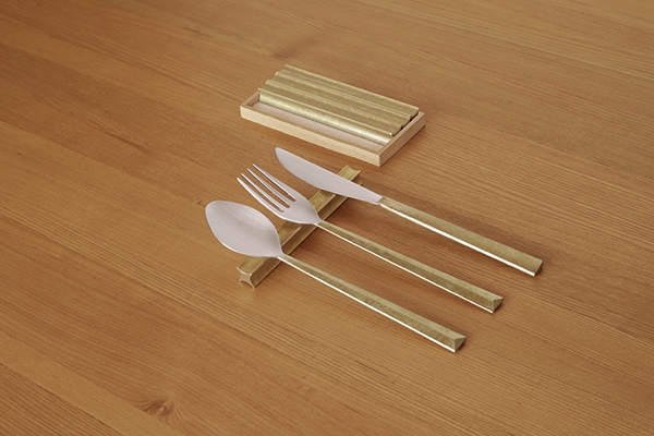 真鍮鋳肌を持ち手に活かしたカトラリーシリーズです。