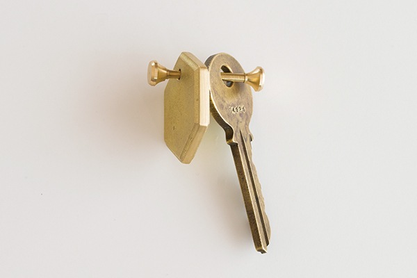 真鍮鋳肌のプレートがついたキーホルダーです。ネジ式でつくられているため、爪を傷つける事なく鍵の差し入れができます。よく使う鍵をプレート横に配置しておけば、使うたびに見て探す手間がかかりません。