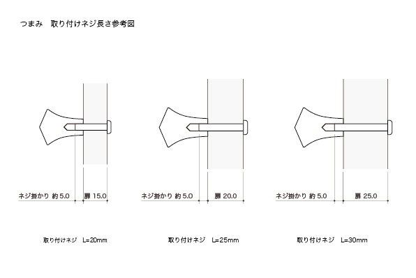 取り付ける扉に合わせて大小のサイズがあり、裏から固定するネジの長さを扉厚に合わせて選ぶことができます。