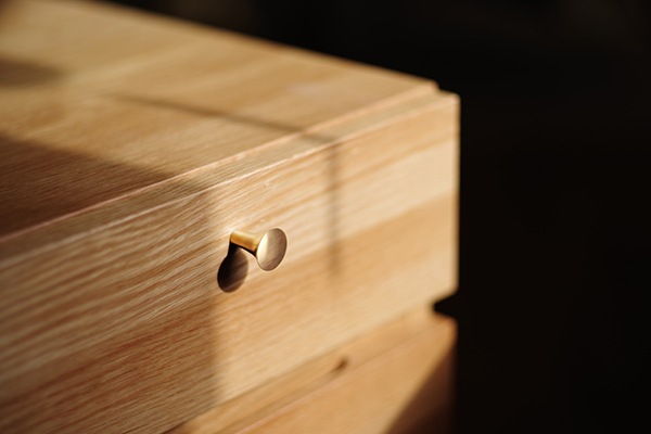 真鍮のつまみは、鋳肌仕上げの八角と、削り出しの丸をご用意しました。