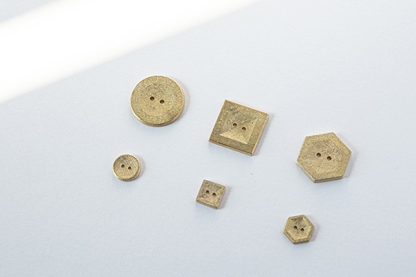 The buttons come in two sizes, large and small, and three designs: round, square, and hexagonal. The large size is suitable for jackets and coats. Simply changing one button can alter the overall impression. They can also be enjoyed as accessories when attached to hats or bags.