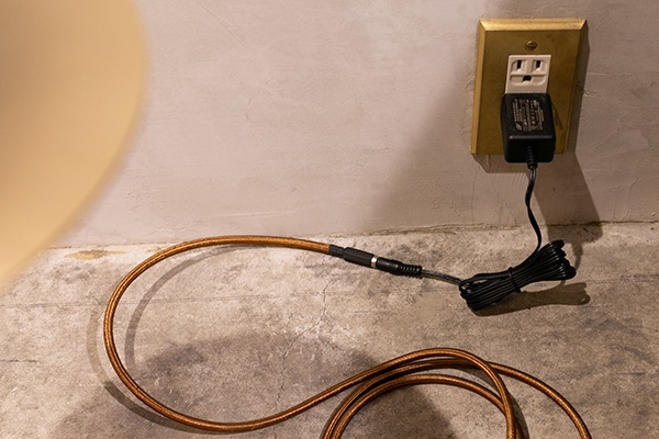 本体とは別にACアダプターを付属しておりますので、本体コードにACアダプターのプラグを接続して、コンセントに挿しこんでご使用ください。
