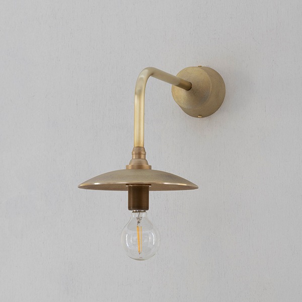 真鍮鋳物のL 字ブラケットに、FUTAGAMI ペンダントシリーズのシェード(円錐・半球など)を自由に組み合わせられる壁付けランプです。防滴構造のため、雨がかかるエントランスやテラスでも使用可能。屋内外を同一意匠で統一できることから、住宅はもちろん、ホテルやレストランでも幅広く採用いただけます。
