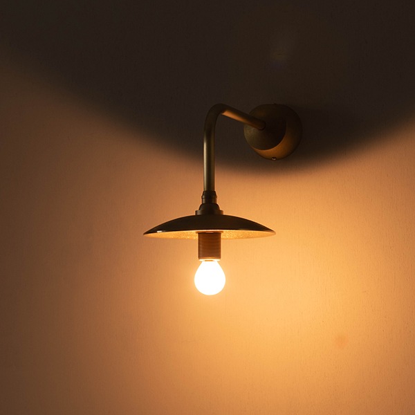 インテリアで重宝するのは、ソファサイドに淡い光を添えてリビング全体を上質な寛ぎの空間へ昇華させたり、廊下・ベッドサイドのナイトライトとして“ 点の光” を加えたい場面。真鍮の鋳肌が光をやわらかく反射し、壁面に深い陰影と温かみをもたらします。時とともに真鍮の表情が琥珀色へと熟成し、空間の変化を静かに映し出す一灯です。