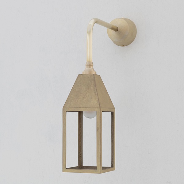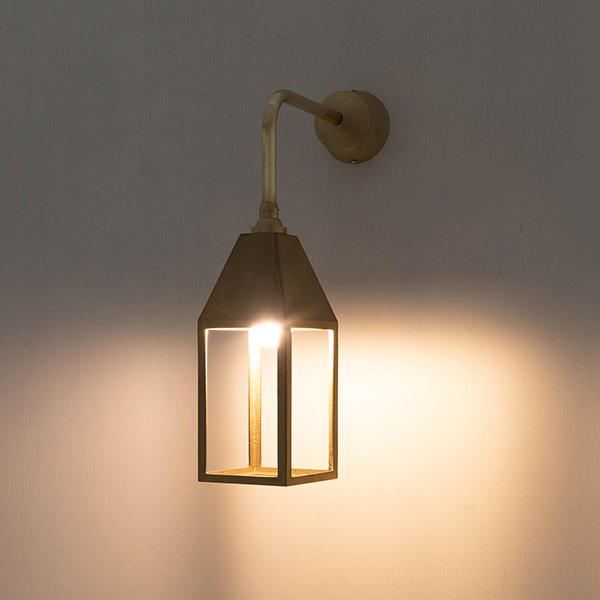 インテリアで重宝するのは、ソファサイドに淡い光を添えてリビング全体を上質な寛ぎの空間へ昇華させたり、廊下・ベッドサイドのナイトライトとして“ 点の光” を加えたい場面。真鍮の鋳肌が光をやわらかく反射し、壁面に深い陰影と温かみをもたらします。時とともに真鍮の表情が琥珀色へと熟成し、空間の変化を静かに映し出す一灯です。