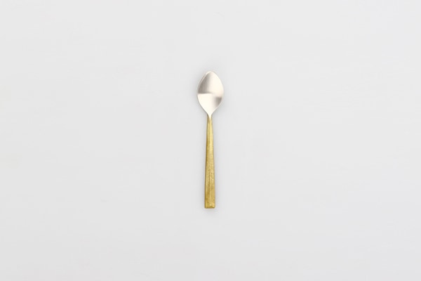 This cutlery series features handles made from solid brass casting, providing a unique texture and a comfortable grip. Made from lead-free brass, the parts that touch your mouth are plated with silver for safety. Enjoy the contrast between brass and silver, the smooth feel in your mouth, and the comfortable grip of the textured handles.