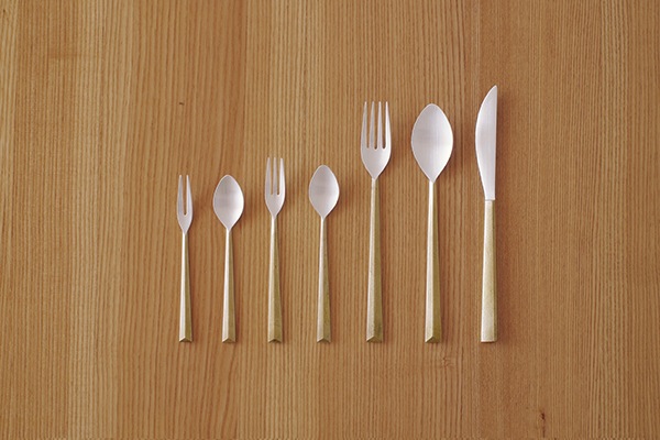 真鍮鋳肌を持ち手に活かしたカトラリーシリーズです。