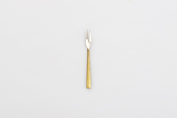 This cutlery series features handles made from solid brass casting, providing a unique texture and a comfortable grip. Made from lead-free brass, the parts that touch your mouth are plated with silver for safety. Enjoy the contrast between brass and silver, the smooth feel in your mouth, and the comfortable grip of the textured handles.