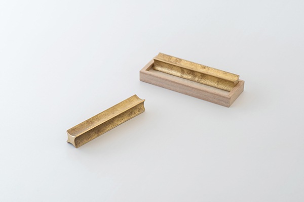The cutlery rest "Ryusei" is crafted with a cast surface, themed around "light." Small cutlery rests tend to scatter when stored, so we have designed them to be stored in a wooden box.