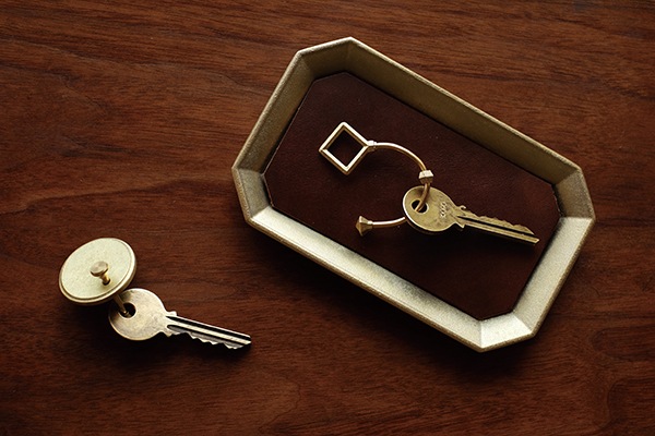 真鍮鋳肌のプレートがついたキーホルダーです。ネジ式でつくられているため、爪を傷つける事なく鍵の差し入れができます。よく使う鍵をプレート横に配置しておけば、使うたびに見て探す手間がかかりません。