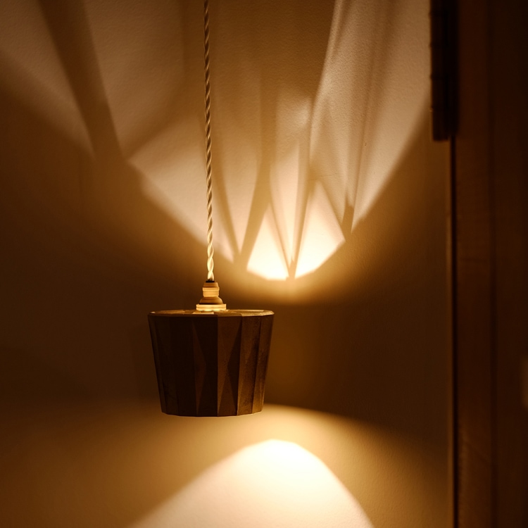 複雑に折りたたまれたような形のシェードはきらめいた光を上部・下部共にもたらします。