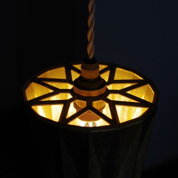 シェード上部が透けていて天井に星形の影が映るランプシェードです。