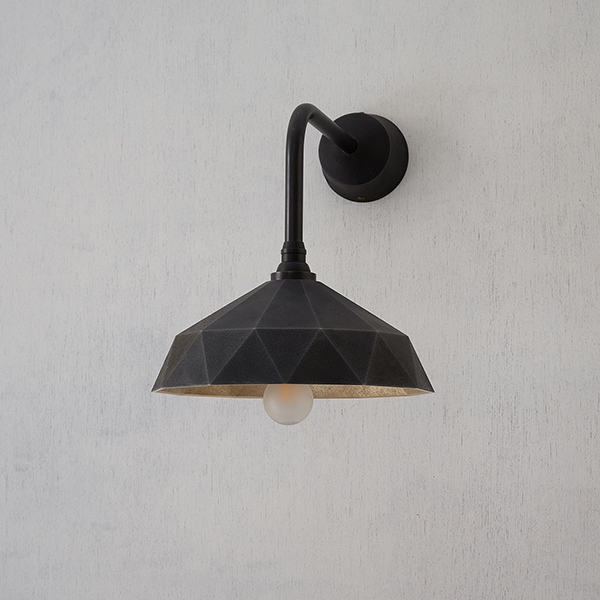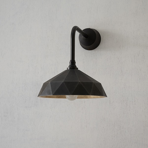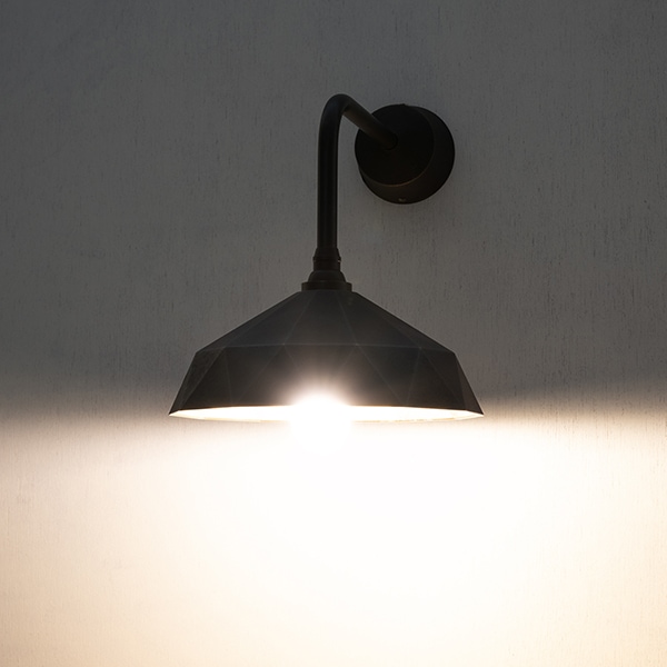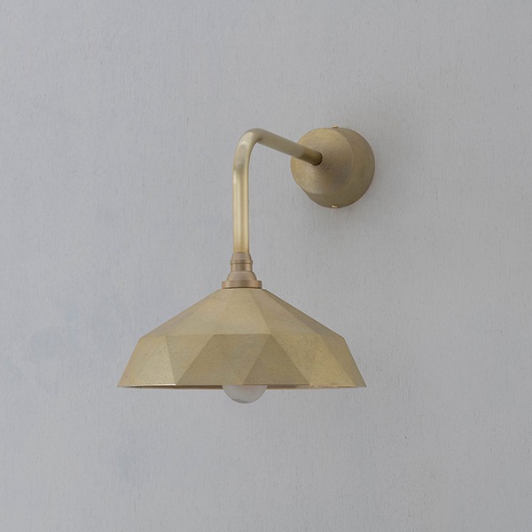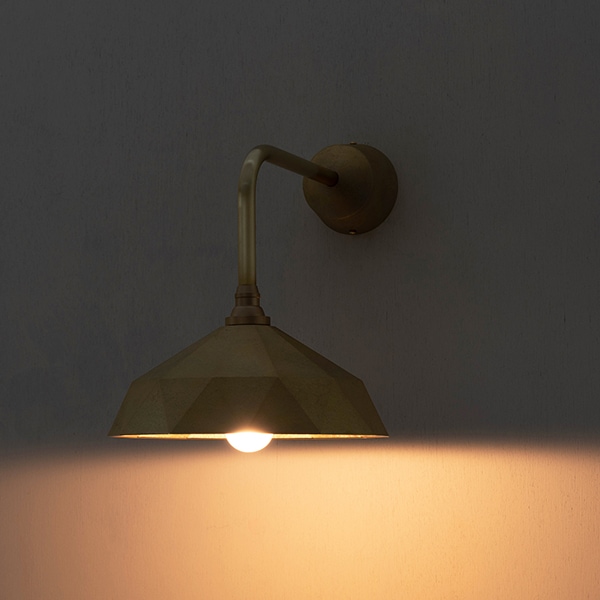 真鍮鋳物のL 字ブラケットに、FUTAGAMI ペンダントシリーズのシェード(円錐・半球など)を自由に組み合わせられる壁付けランプです。防滴構造のため、雨がかかるエントランスやテラスでも使用可能。屋内外を同一意匠で統一できることから、住宅はもちろん、ホテルやレストランでも幅広く採用いただけます。
