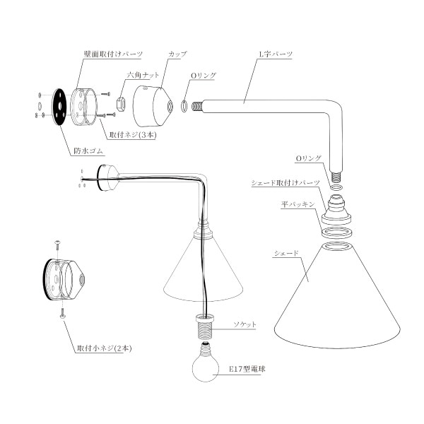 ・重量:約1850g(ブラケット、カップ、シェード含む)