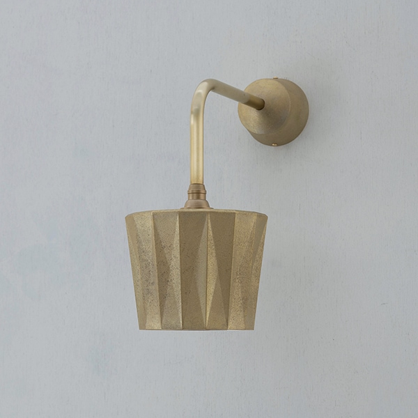 真鍮鋳物のL 字ブラケットに、FUTAGAMI ペンダントシリーズのシェード(円錐・半球など)を自由に組み合わせられる壁付けランプです。屋内外を同一意匠で統一できることから、住宅はもちろん、ホテルやレストランでも幅広く採用いただけます。