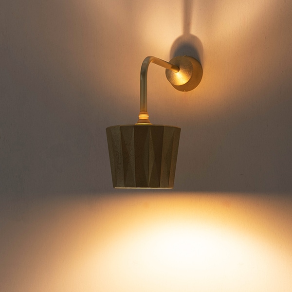 インテリアで重宝するのは、ソファサイドに淡い光を添えてリビング全体を上質な寛ぎの空間へ昇華させたり、廊下・ベッドサイドのナイトライトとして“ 点の光” を加えたい場面。真鍮の鋳肌が光をやわらかく反射し、壁面に深い陰影と温かみをもたらします。時とともに真鍮の表情が琥珀色へと熟成し、空間の変化を静かに映し出す一灯です。※星影のブラケットランプは、上部に透かしがあるため屋外ではご使用いただけません。
